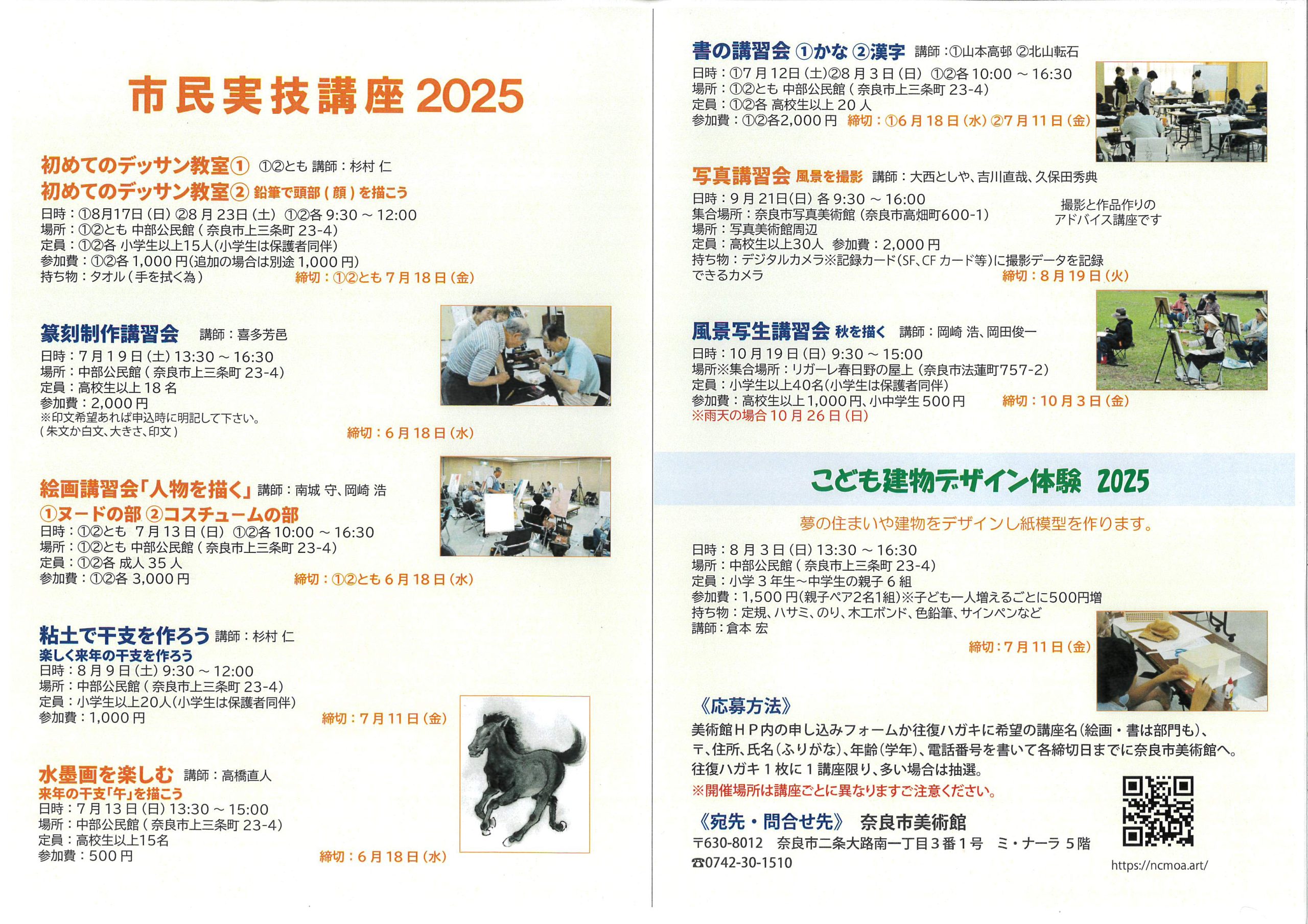 2025年度市民実技講座・子どものやさしいアート体験の一覧は